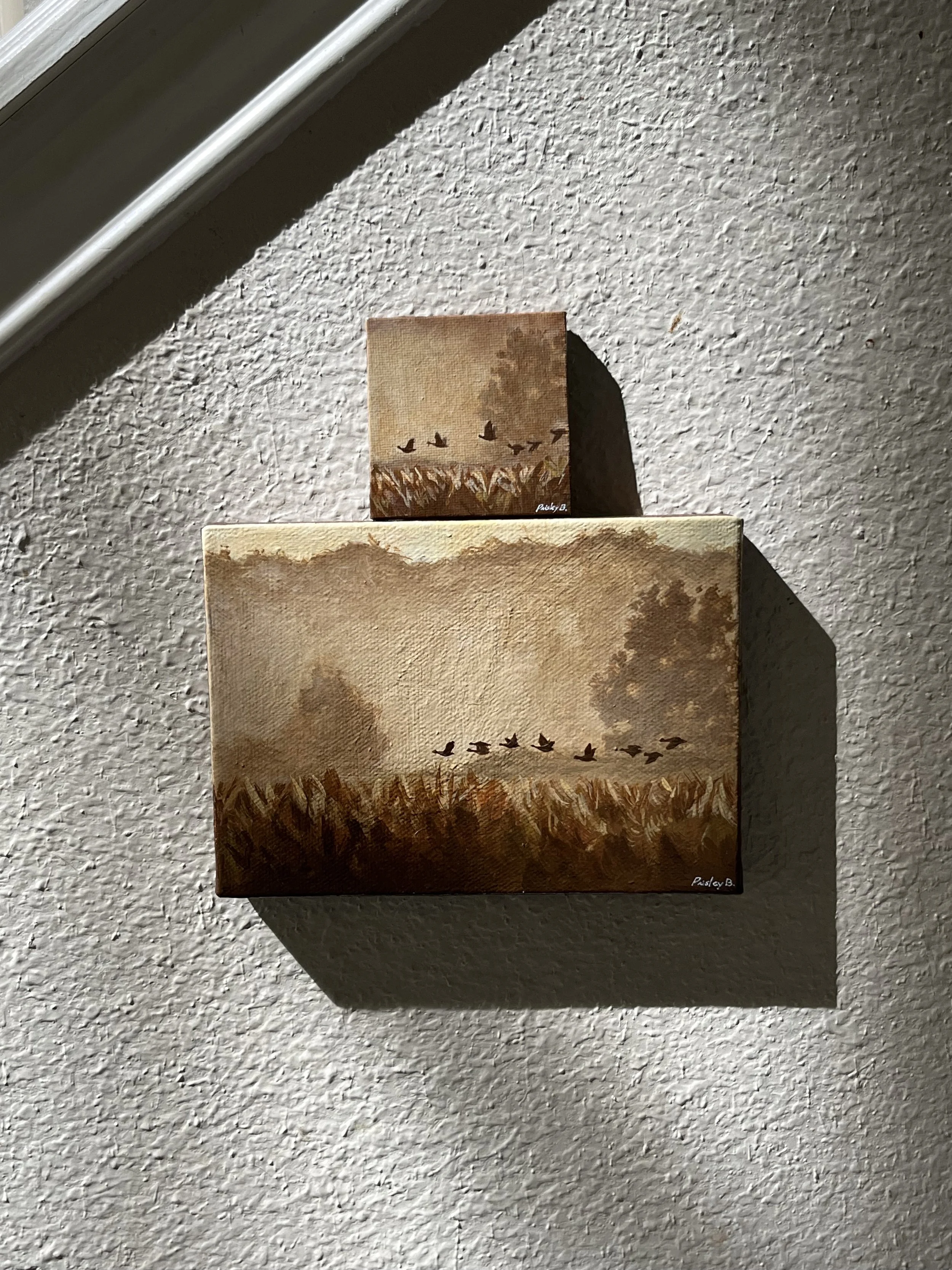 -This painting has been sealed with a protectant spray and can be cleaned with a slightly damp napkin or towel if necessary.